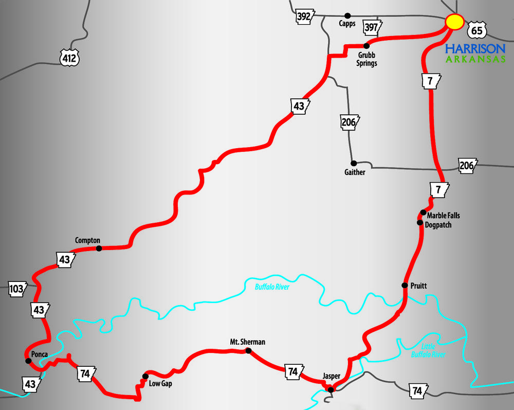 Right off of highway 74, we rolled into the small scenic town of Jasper. Jasper is a town in Newton County where the nation’s first national river, the Buffalo begins. Jasper has a very popular downtown square that bikers like to stop at when riding through. The town is home to the Ozark Café, established in 1909 and still maintains a soda fountain. Not only is the Ozark Café on the National Register of Historic Places, it serves great food AND is the second oldest restaurant in the state of Arkansas! While we were there getting some cold drinks, almost all of the customers who came through the door were on motorcycles. Jasper is a very friendly town for bikers and it has several other cafes. After talking to a guy who owns a motorcycle shop on the Jasper square, we ran scenic byway 7 (the state’s first national scenic byway) to get back to highway 206. Since the bikes were running flawlessly we decided to keep riding and go back to Marion County and take highway 235 into Yellville to go eat at a Mexican buffet.
